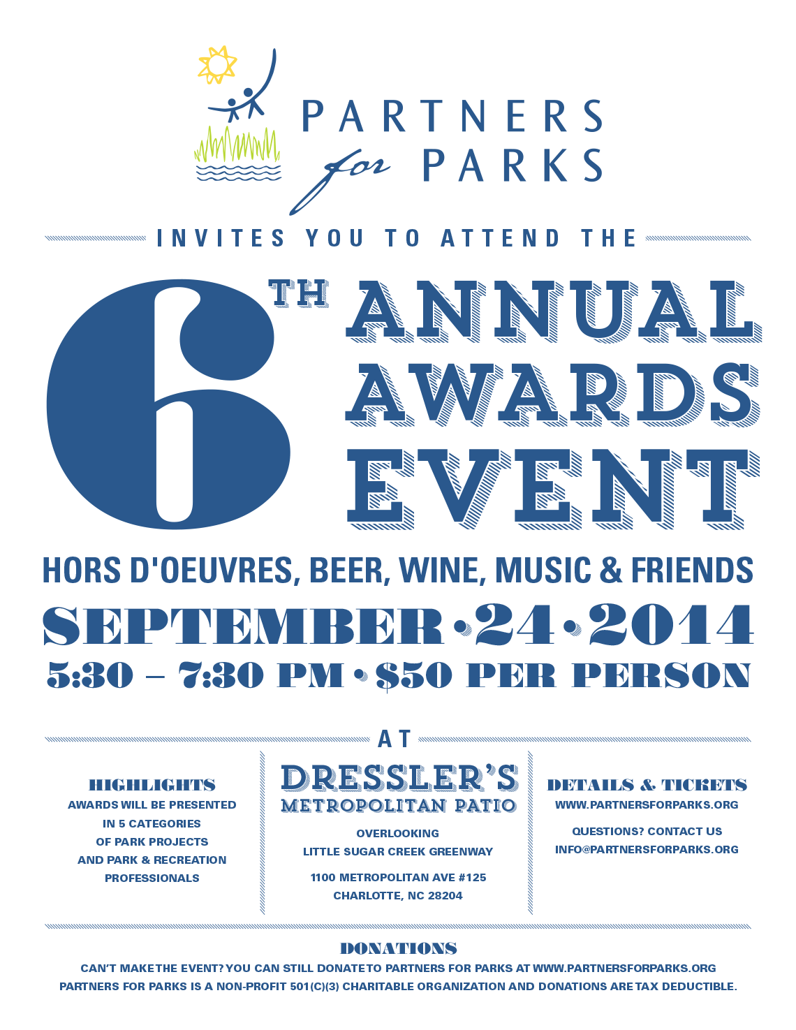 Can’t make the event? You can still donate to Partners for Parks. We are a non-profit 501(c)(3) charitable organization and donations are tax deductible.